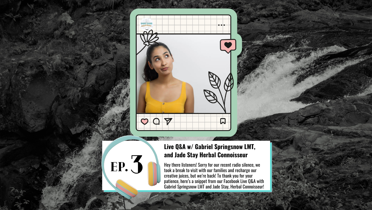 Q&A with Gabriel Springsnow (LMT and owner of Springsnow Massage) and Jade Stay (herbal connoisseur and one half of High Heals Botanica). Be sure to check back on Saturday Nov. 6th, that’s when we’ll be posting our latest episode where featured guest Andre Royal (Co-Founder of the Suddenly Sleepy Non-Profit Organization) gives us the 411…
