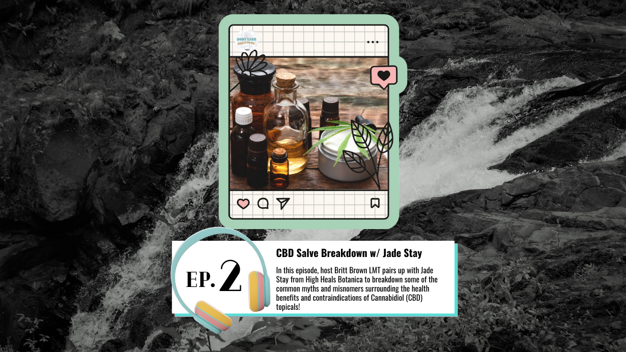 Hosted By Britt L Brown LMT In this episode, Britt pairs up with Jade Stay, salve maker and part owner of High Heals Botanica, to breakdown some of the common myths and misnomers surrounding the health benefits and contraindications of Cannabidiol (CBD) topicals!